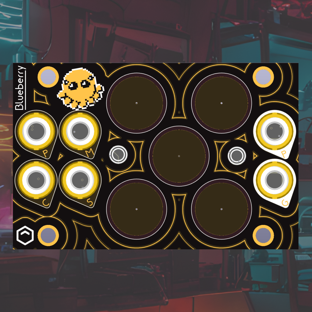 Our third collaboration with Alex Evans (Plinkysynth.com)! Blueberry is a small octopus who loves to sequence. Her five pressure sensitive touch pads can be tuned to any scale, then played to your heart's content. It pairs really well with Bib (fx) and Buzzrito (oscillator) but easily integrates into any eurorack setup by providing a gate and pitch (V/Oct) output in response to touch.