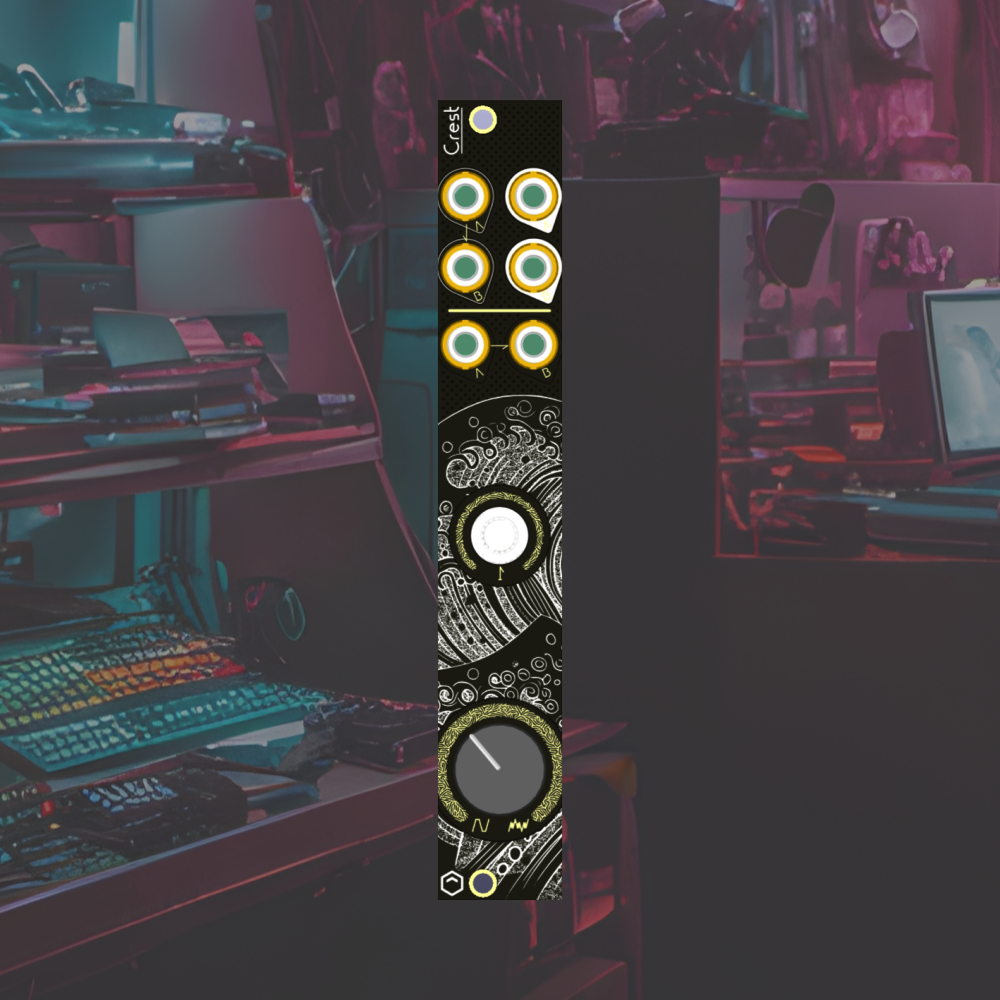 Crest is a morphable dual soft clipper/wavefolder in 4hp. Its inputs are DC coupled, so it can be used to process slow modulation as well as fast audio rate signals such as to add upper harmonics before a filter, and the top input (A) is normalized to the bottom input (B) when the bottom is left un-patched. The drive/fold (bottom) and input level (top) knobs are shared between both channels, but the cv inputs are separate A/B input gain controls, allowing Crest to be used as a signal coloring VCA. The left (A) CV input is also normalized to the right (B) cv input so a single signal can modulate both channels at once. Finally, the input gain knob LEDs indicate the output levels for each channel - Blue for channel A, and Red for channel B.