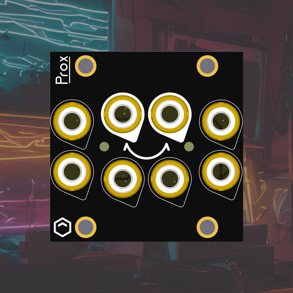 Prox (short from Proximity) is a simple panning mixer, inspired by https://github.com/sarnesjo/nearness. Prox drops the center jack, to fit into only 1u8hp, and adds normalizations from each left jack to its matching right side jack. These normalizations allow the user to patch a mono signal as a mono (though louder) output, or can be broken by plugging a cable into the right side jack allowing the usual panning behavior.
